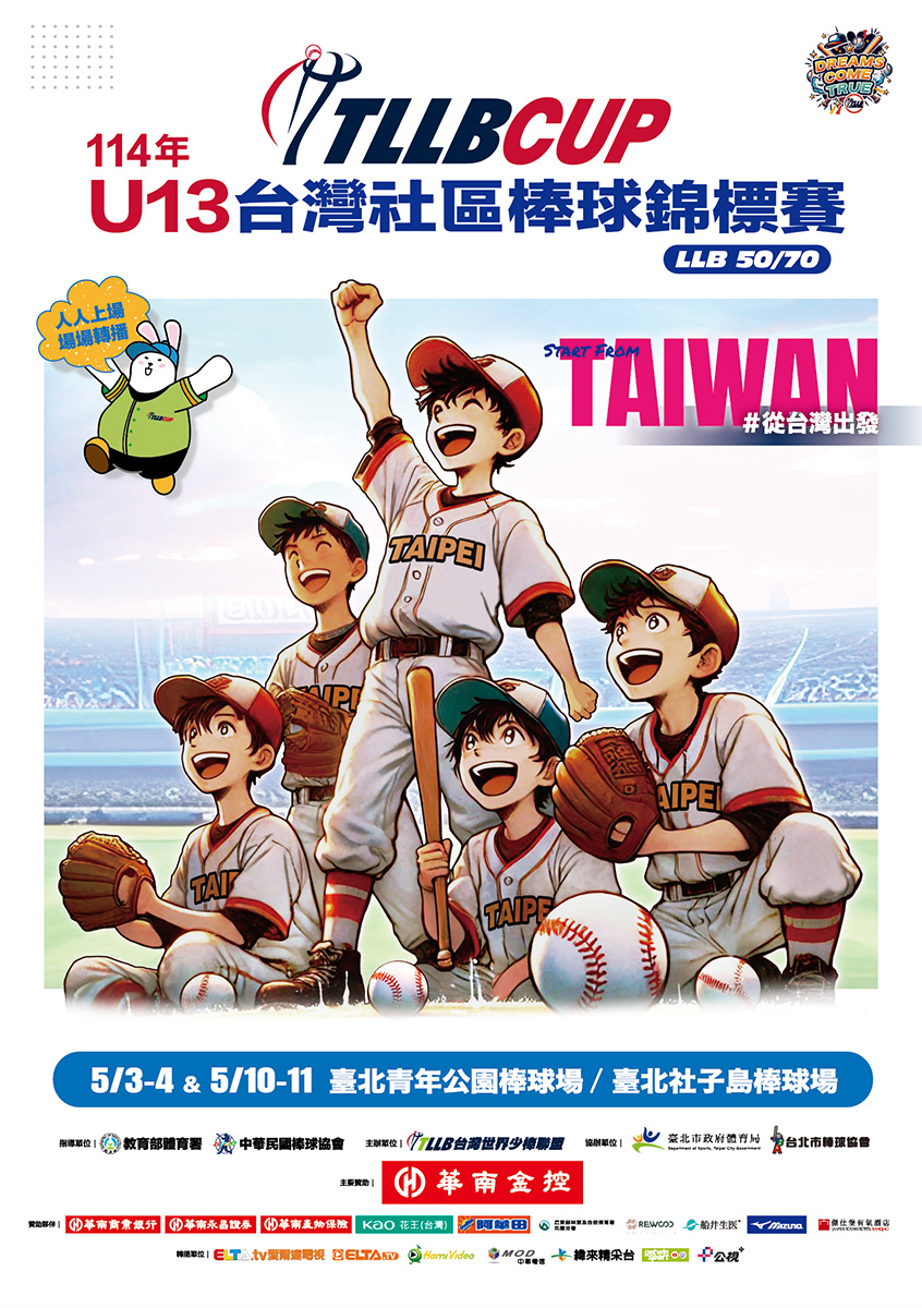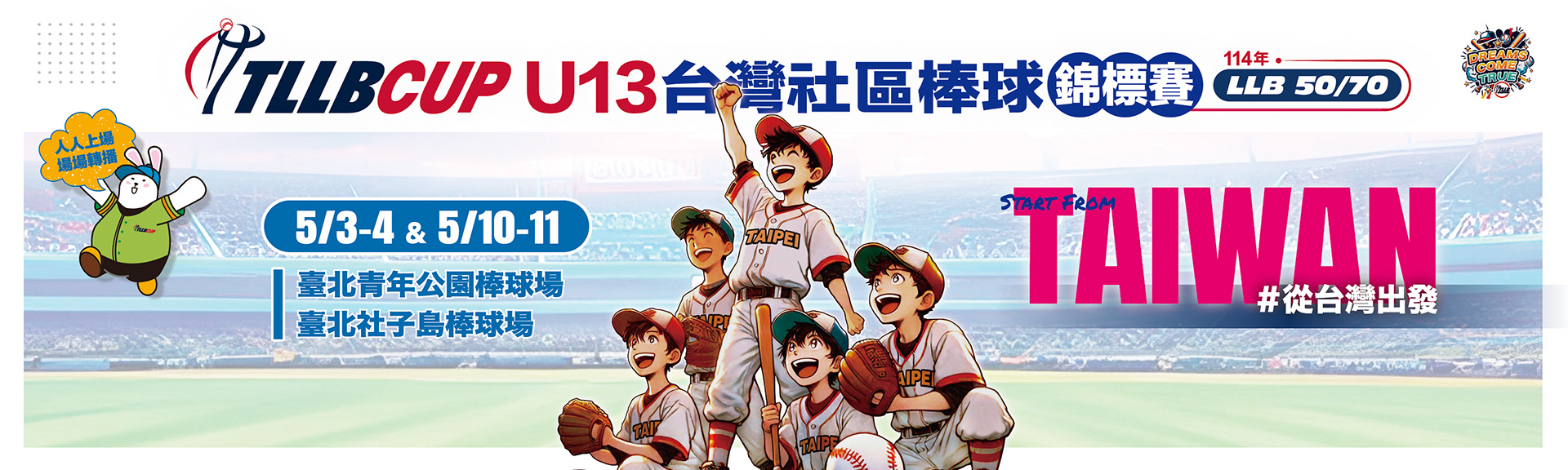 - 由台灣世界少棒聯盟(TLLB)主辦「114年TLLB CUP U13台灣社區棒球錦標賽(LLB50/70)」原定於5/3-4及5/10-11連續兩個周末在臺北青年公園及社子島棒球場開打,因雨5/18改至社子島棒球場舉行冠軍戰,最終由WHB魔法師獲得冠軍,將代表臺灣參與6/16至6/21在臺灣首次舉行的LLB 50/70組亞太暨中東區資格賽的隊伍,爭取前往美國世界賽的資格。