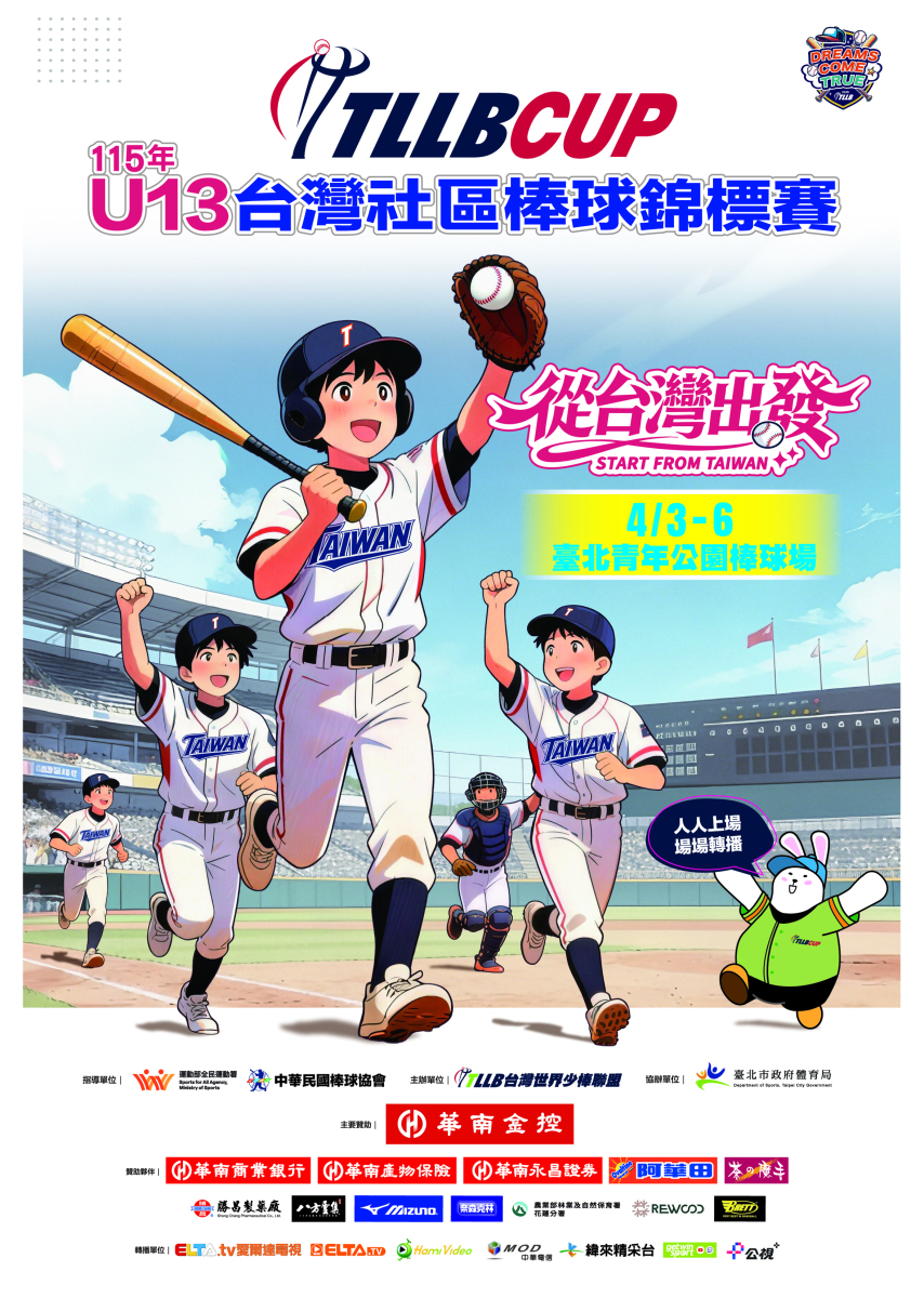- 為推廣基層棒球發展、讓棒球夢想從社區發芽,由台灣世界少棒聯盟(TLLB)主辦的「115年TLLB CUP U13台灣社區棒球錦標賽」即將熱血開打!