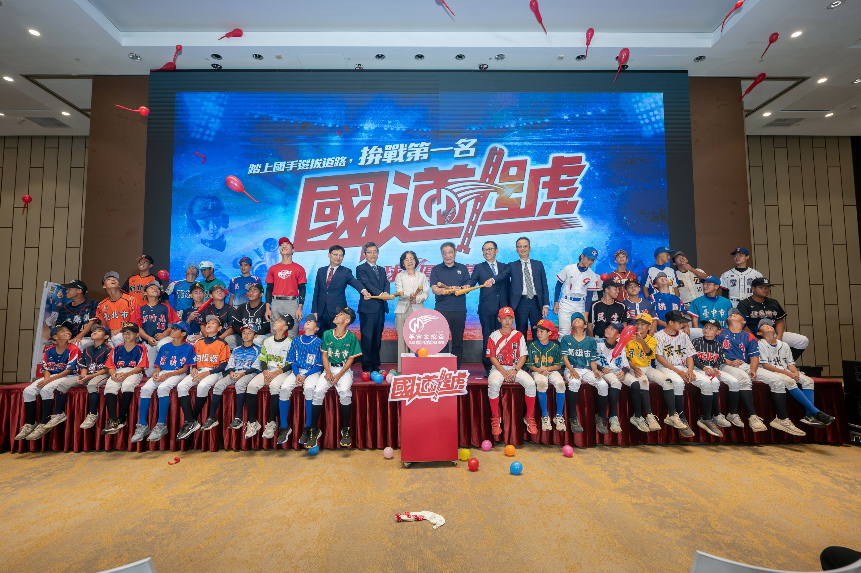今日(5月12日)中華棒協與華南金控在華南銀行總行大樓舉辦賽事宣傳記者會,由中華棒協副理事長林華韋、華南金控暨華南銀行董事長陳芬蘭、華南金控總經理李耀卿、華南銀行總經理黃俊智、華南永昌證券董事長黃進明及華南產險總經理陳文智代表出席,與參賽的選手代表共同啟動賽事。